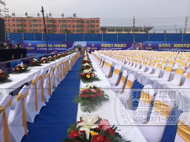 登封國際商貿城奠基儀式 華熠向您呈現(xiàn)大型活動現(xiàn)場的專業(yè)性,不論是從前期的與客戶共同規(guī)劃場地到后期的現(xiàn)場執(zhí)行與布置,處處都能體現(xiàn)出華熠公司專業(yè)的一面。 開展會、做活動,用物料就找華熠。百余種活動物料,一站式全程服務。鄭州桌椅租賃專家!