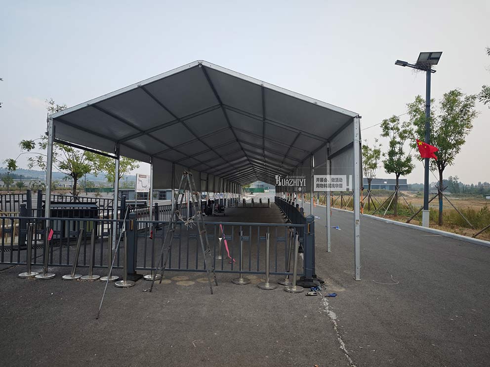 隨著旅游業(yè)的蓬勃發(fā)展,少林寺景區(qū)的人流量日益增大,傳統(tǒng)的安檢設(shè)施已經(jīng)難以滿足需求。為此,景區(qū)管理部門(mén)決定引入篷房式安檢站,以提高安檢效率和游客體驗(yàn)。鄭州華熠篷房出租公司憑借其豐富的經(jīng)驗(yàn),奔赴目的地開(kāi)始了此次的搭建工作。