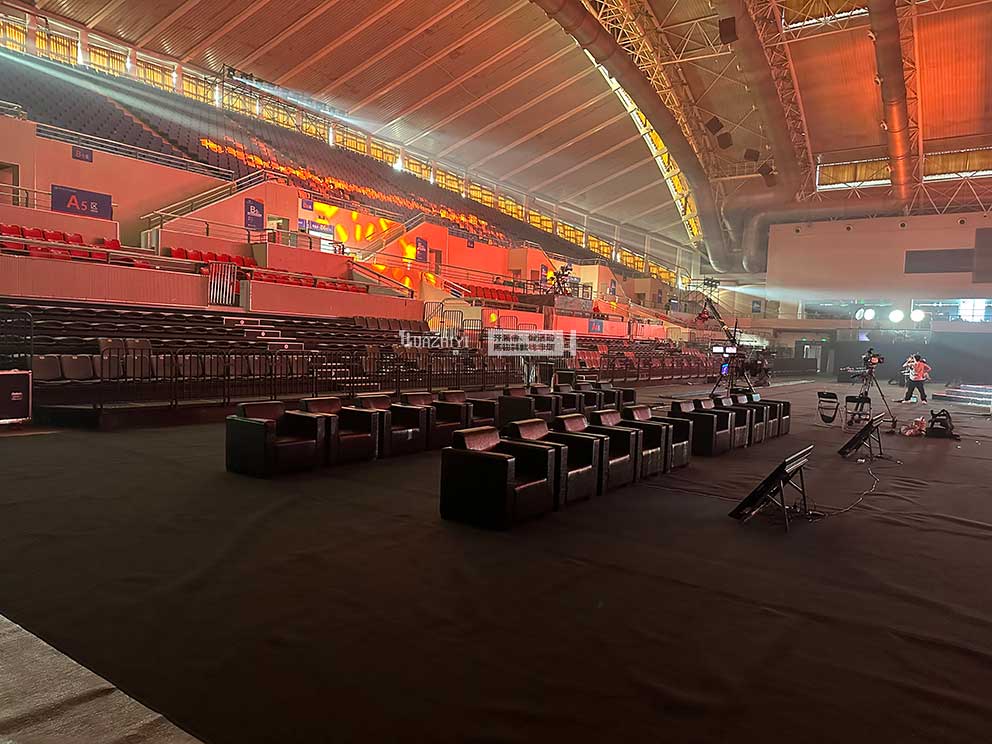 場內(nèi)貴賓沙發(fā)則是觀賽的“舒適結(jié)界”。許昌防爆欄沙發(fā)租賃的黑色皮質(zhì)沙發(fā),舒適感極強,久坐觀賽也不會疲憊。從場外到場內(nèi),這兩種物料如同賽事的“隱形管家”。防爆欄用剛性結(jié)構(gòu)劃分出安全邊界,讓洶涌人潮各歸其位;黑色皮質(zhì)沙發(fā)則以軟性關(guān)懷包裹著參與者的疲憊,讓緊張的競技氛圍里多了份松弛感。