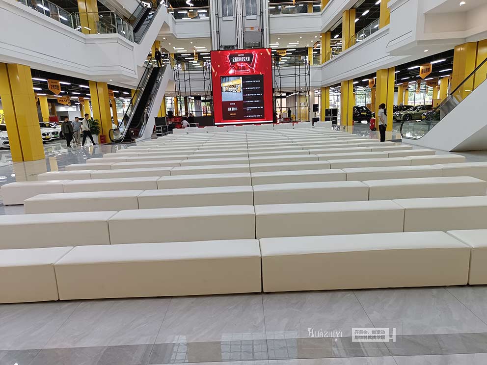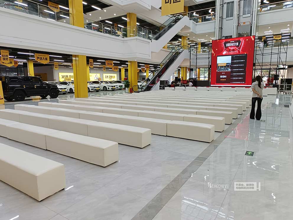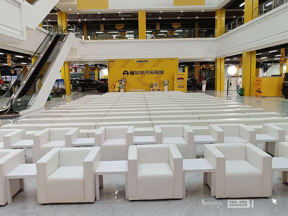 單人白色皮質(zhì)沙發(fā)成為活動現(xiàn)場的亮點物料,簡約大氣、質(zhì)感出眾,白色皮質(zhì)表面光滑易清潔、耐臟耐用,既彰顯高端格調(diào),又與汽車商場的現(xiàn)代簡約風(fēng)格完美融合。雙人沙發(fā)條與三人沙發(fā)條則精準適配多人洽談與休憩需求,布局靈活多樣。兩種沙發(fā)條與單人白色皮質(zhì)沙發(fā)搭配擺放,劃分出清晰的休憩區(qū)與洽談區(qū),讓現(xiàn)場布局規(guī)范有序,動線流暢。
